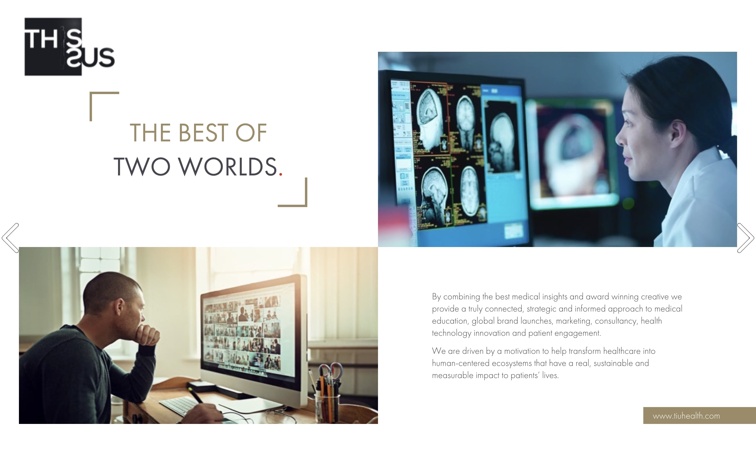 TWO WORLDS.By combining the best medical insights and award winning creative we provide a truly connected, strategic and informed approach to medical education, global brand launches, marketing, consultancy, health technology innovation and patient engagement.